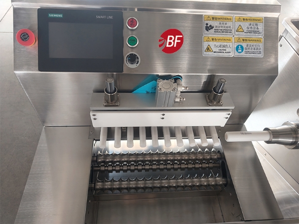 2.采用光電傳感器控制切條長(zhǎng)度,保證藥條長(zhǎng)度一致,每條制品數(shù)量恒定,藥頭短小,且藥頭與成品分流,免去在成品中挑選藥頭。